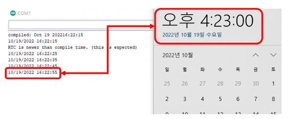 컴파일 시점에서 시간을 저장하는 코드로 보드에 업로드 시 약간의 차이가 발생합니다.